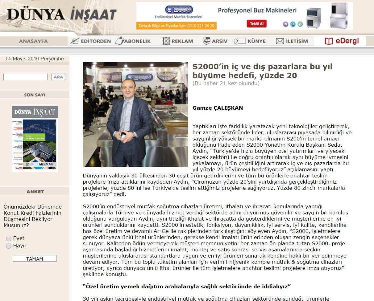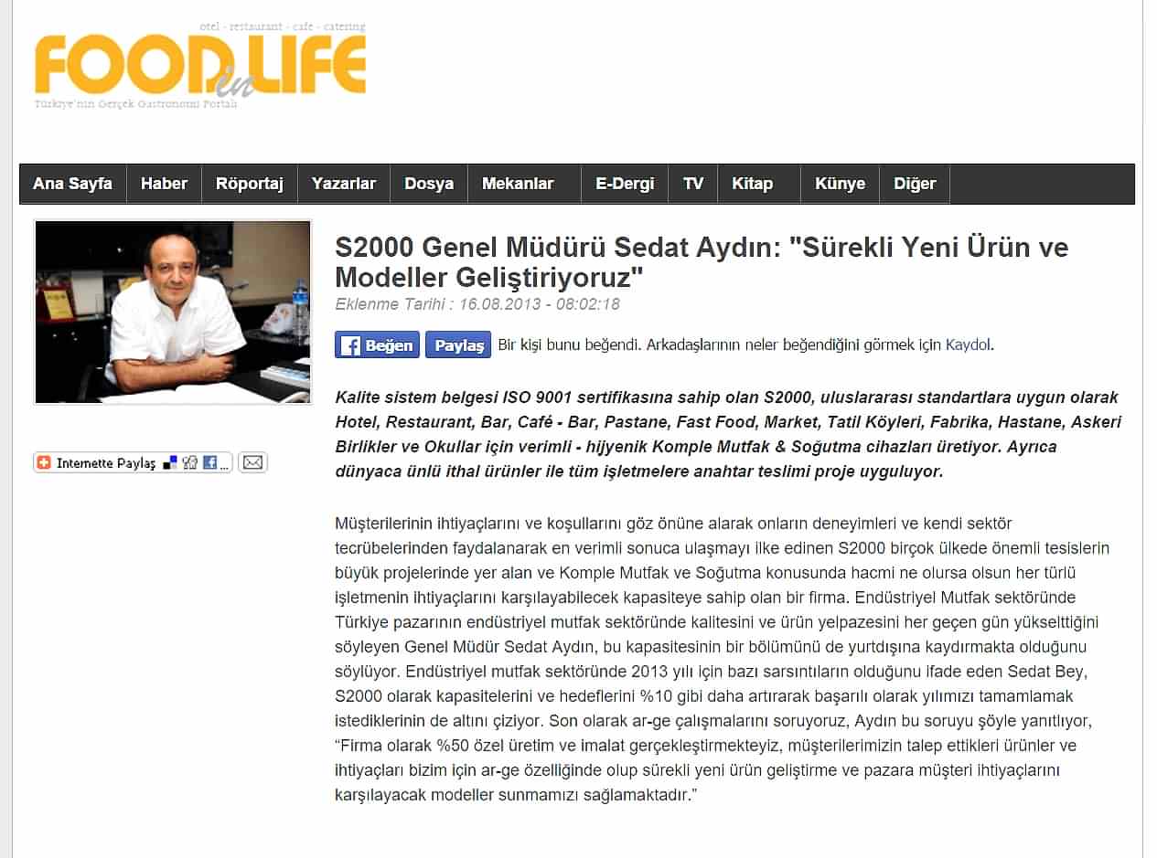 S2000 Genel Müdürü Sedat Aydın: "Sürekli Yeni Ürün ve Modeller Geliştiriyoruz" Food In Life Ağustos 2013