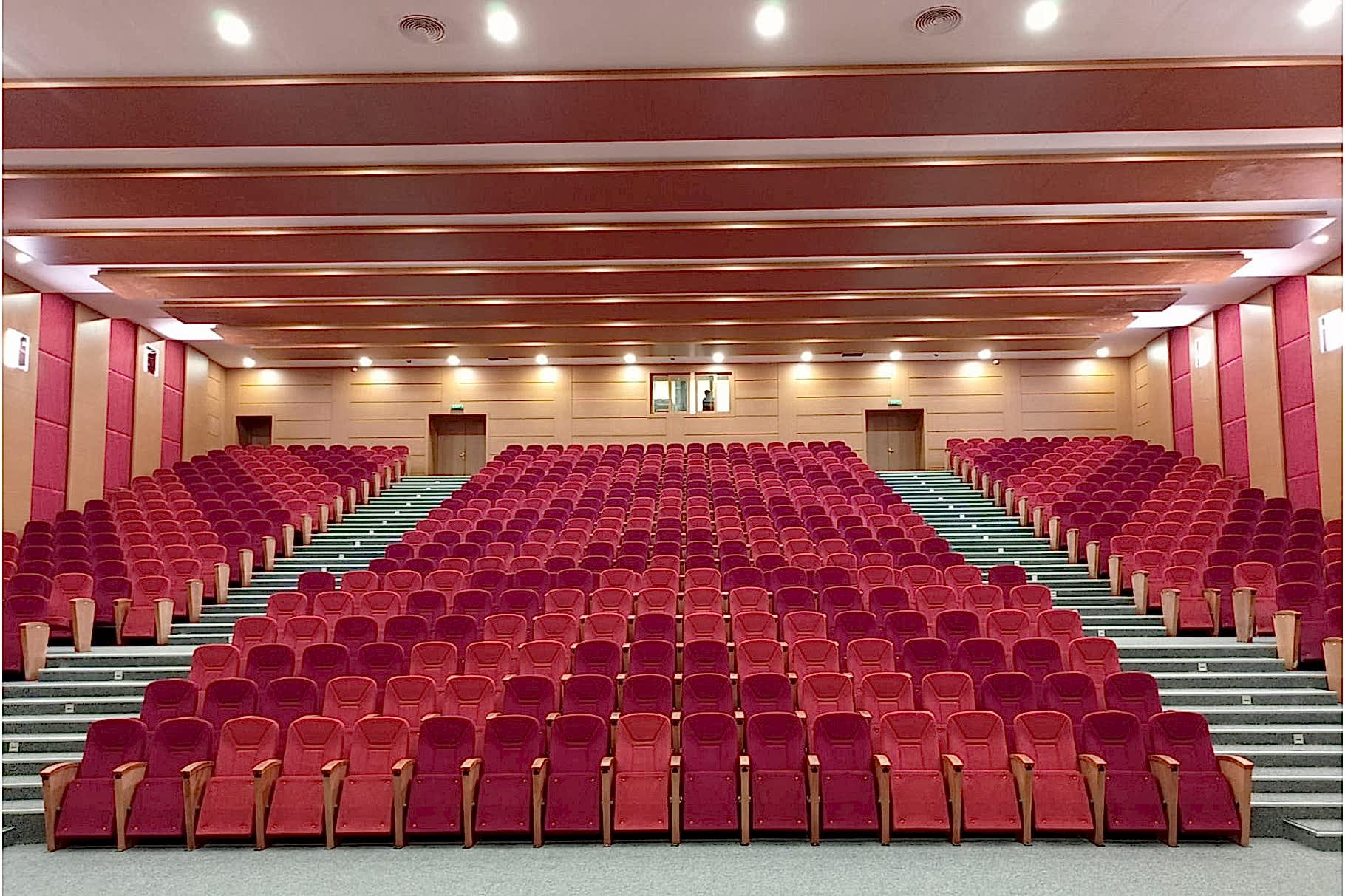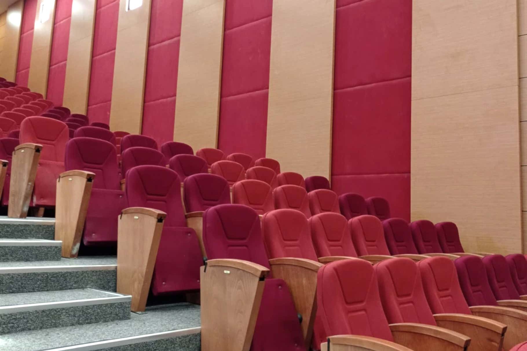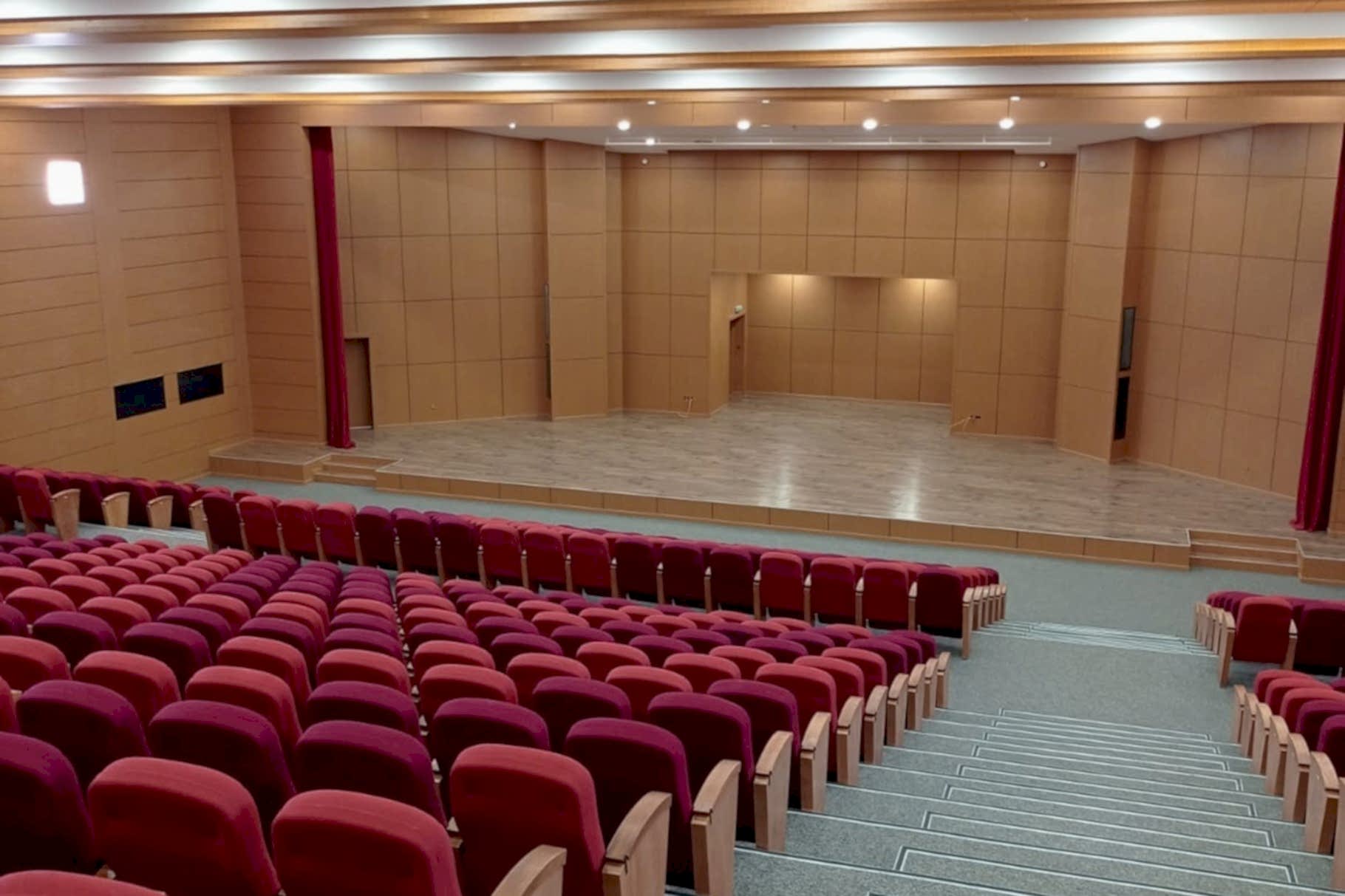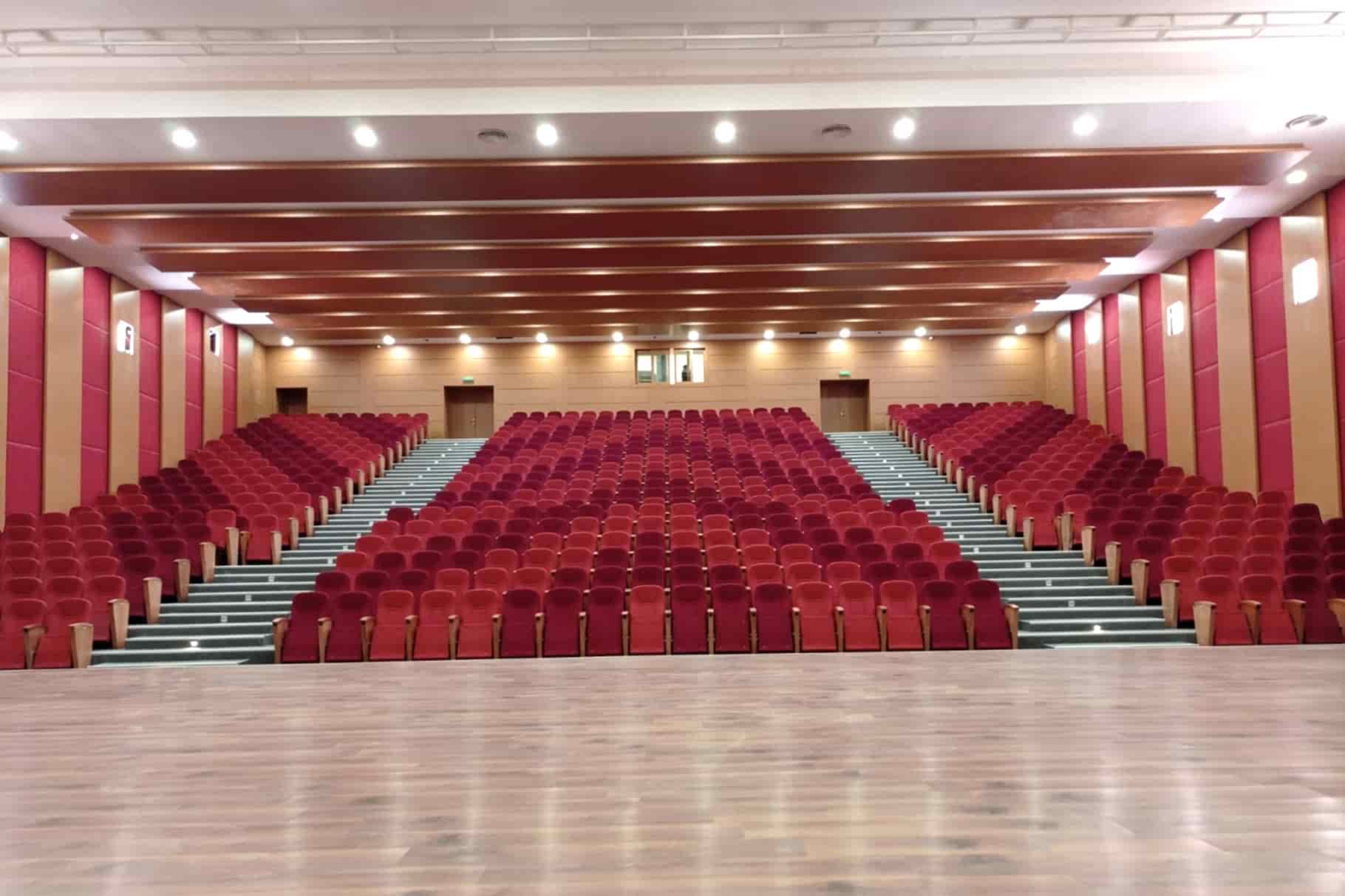 Yaklaşık 500 kişilik konferans ve çok amaçlı salonun akustik tasarım ve projelendirme çalışması firmamız bünyesinde yapılmıştır. Tüm inşai ve demir konstrüksiyon uygulamaları, ses izolasyonu, akustik ahşap paneller ve kumaş kaplamalı paneller, tüm ses izolasyonlu kapılar tarafımızca imal edilip monte edilmiştir. Proje dahilinde sahne perdeleri, koltuk, sahne parkesi ve süpürgelik uygulamaları yapılmıştır. Ahşap paneller için mdflam ahşap malzemeler, sahne parkesi için laminat parke kullanılmıştır.